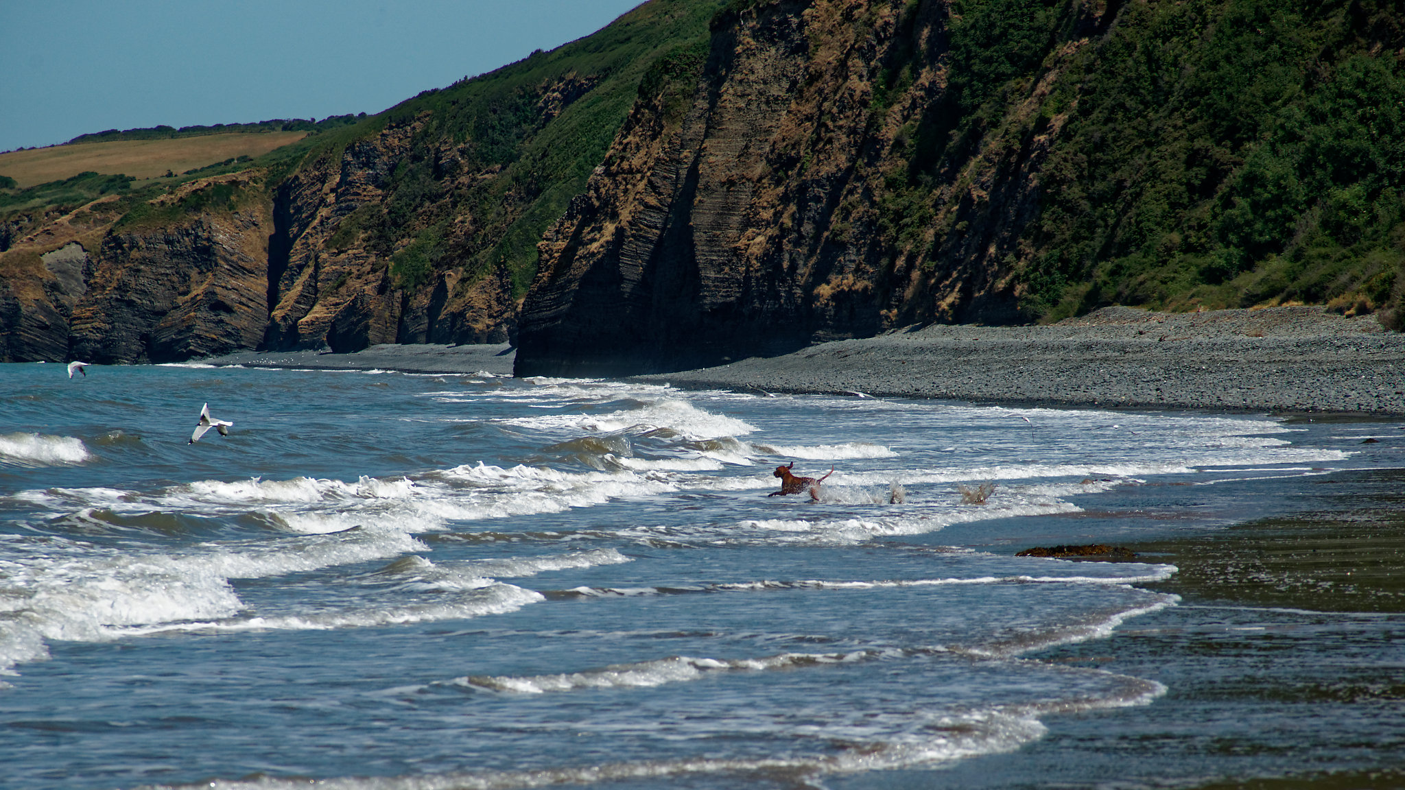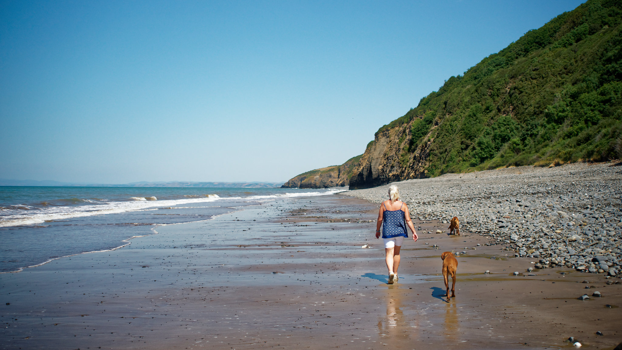 New Quay Cei Bach is a 17 minute (7 mile) drive from the cottage. Park at the Llanina Wood Carpark. From the carpark follow the path to the beach and turn right to head North. You'll need to cross the river to get onto the beach. There may be stepping stones or paddling may be a requirement!